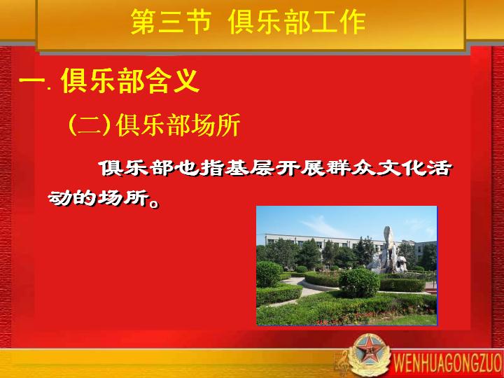 (二)俱乐部场所俱乐部作为基层文化活动的场所,它的建设也是十分重要的。 基层俱乐部应该有一定的场地,如游艺室、电视室、乒乓室、篮球场等;有一定的文体活动器材,如录音机、乐器、体育活动器具等;有一定的文化活动资料,如图书、杂志、报纸、录音带、录像带等。基层党组织应该关心基层俱乐部场所的建设,按照上级有关规定管理好俱乐部场所。 近年,总部机关对基层俱乐部场所的建设下发了一系列文件。 2000年12月,由总政治部、总后勤部联合下发的《关于进一步加强军队基层文化建设的意见》,提出“连队及相当单位要建立俱乐部”,并对连队俱乐部的设施、器材,组织开展文化活动的内容等,进行了规范。 2002年6月,总政治部下发的《连队俱乐部管理规定》指出:“连队俱乐部是连队思想文化工作的重要场所,在党支部领导下由军人委员会组织开展活动。主要任务是活跃文化生活,陶冶官兵情操,鼓舞连队士气。” 2002年12月,由总政治部、总后勤部联合下发的《中国人民解放军文化装备管理暂行规定》,把连队俱乐部的器材纳入了文化装备进行建设和管理,并在文化装备的建设规划和编配标准上,贯彻了向连队俱乐部倾斜的原则。 2004年5月,总政治部、总后勤部制定下发的《军队基层文化建设暂行规定》,对连队俱乐部建设提出了新的要求和标准,使连队俱乐部建设走上了规范化、制度化、配套化的轨道,为基层官兵开展群众性、经常性的文化活动提供了良好条件和有力保证。 |